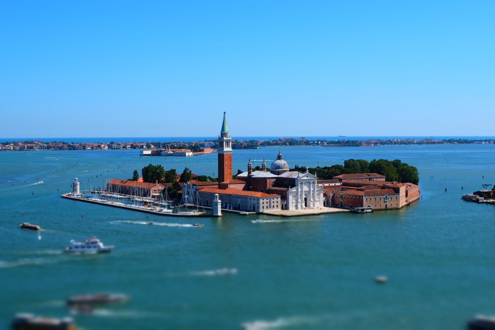 A world-famous historic city in northern Italy, the capital of the Veneto region, built on more than 100 islands in a shallow lagoon in the Adriatic Sea. They are famous for their canals instead of roads, gondolas, architecture (St. Mark's Square), and slow descent into the sea